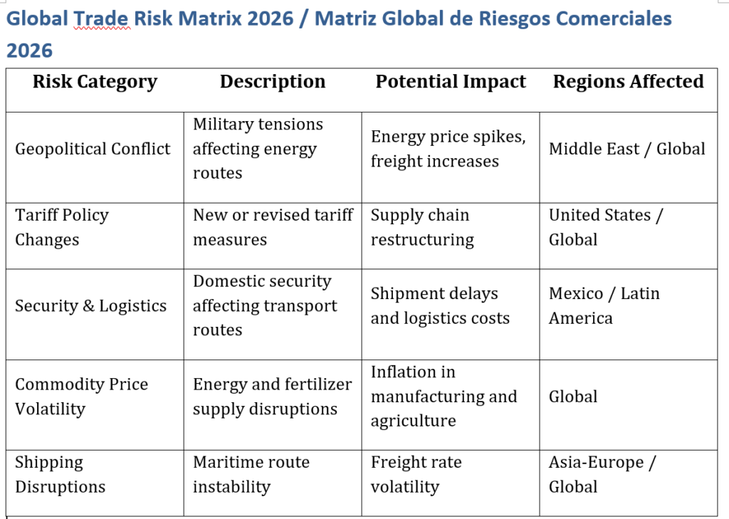 SEMUDMEX Practical Risk Assessment: Supply chains may face renewed tariff volatility affecting pricing, sourcing, and customs compliance.